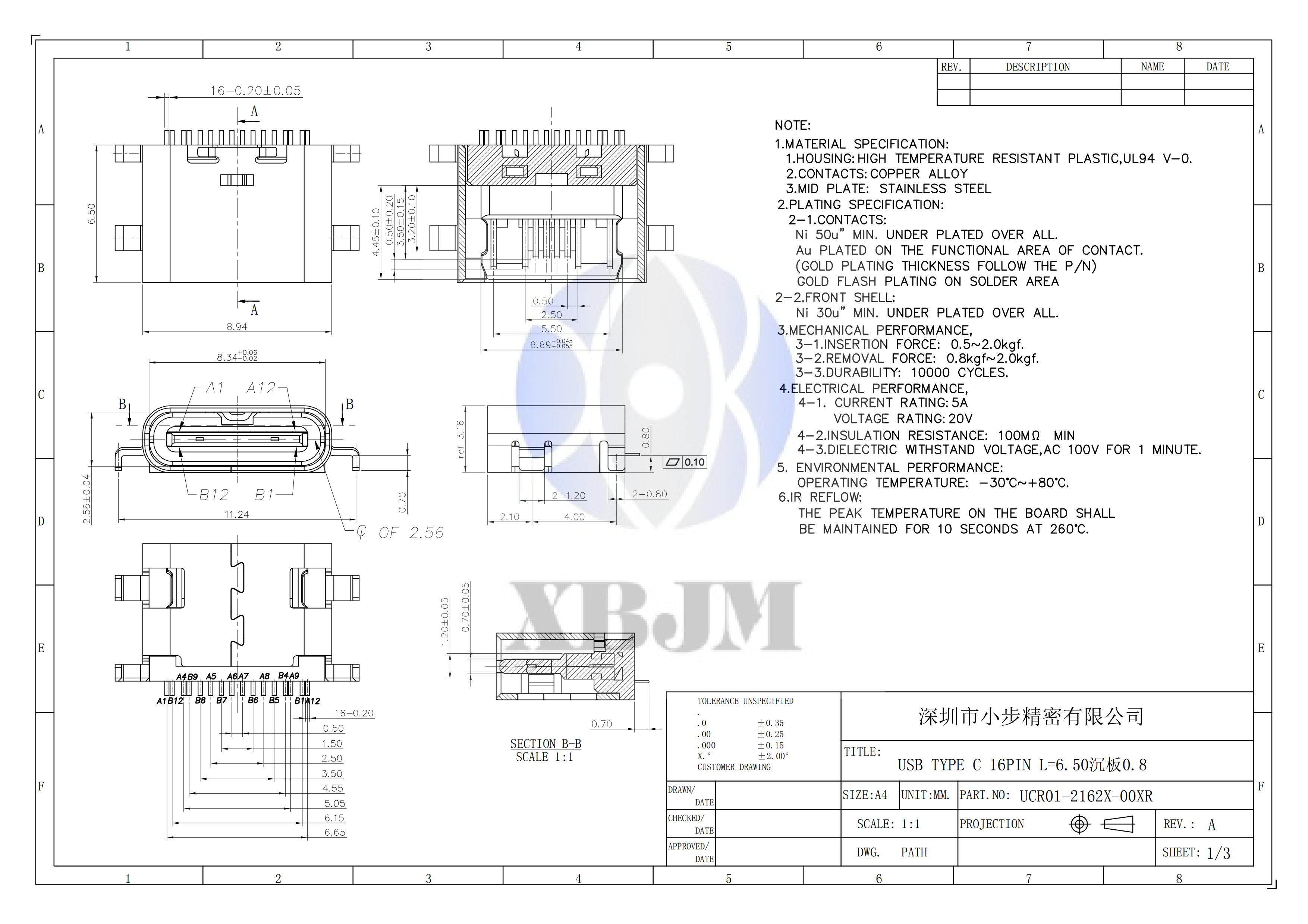 TYPE C 16PIN L6.50沉板0.8