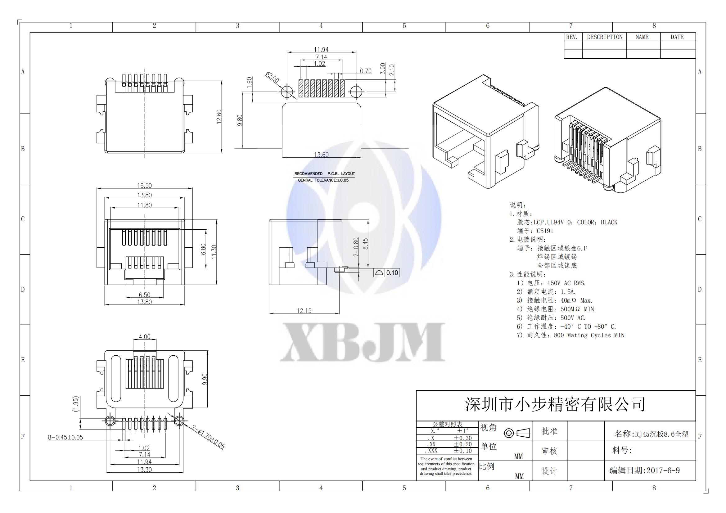 RJ45沉板8.6全塑